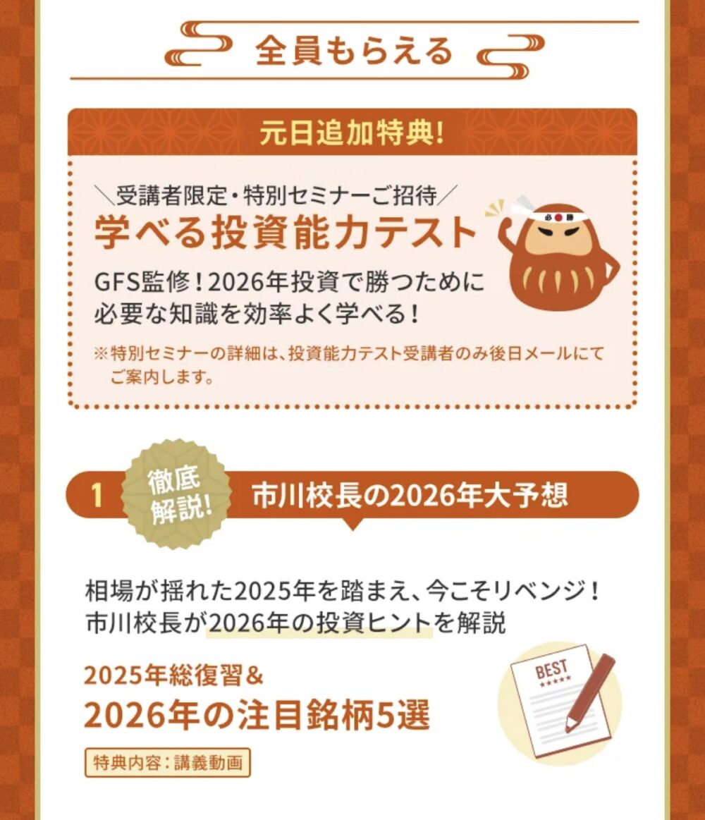 正直、無料で投資が学べて、特典までもらえるので、またとないチャンスです!