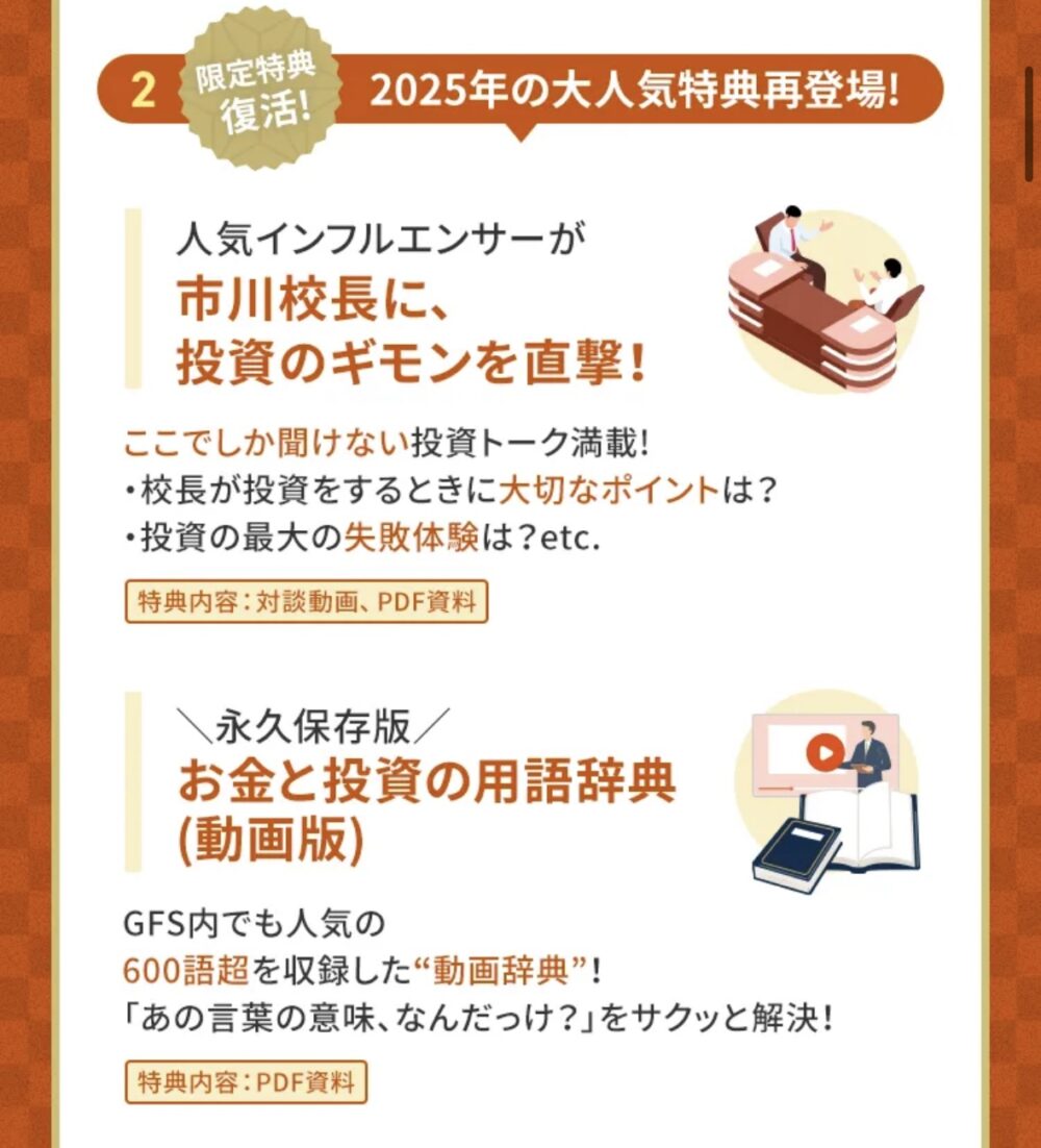 バフェッサを運営しているのは、日本一の投資スクールなので、特典の内容は非常に価値の高いものばかりです。