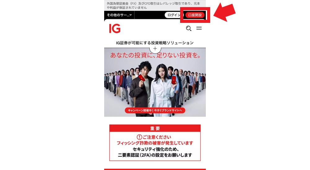 まずは以下のボタンからIG証券の公式サイトへアクセスしましょう。