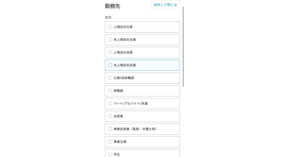 勤務先と資産状況を選択し、「次へ」をタップします。