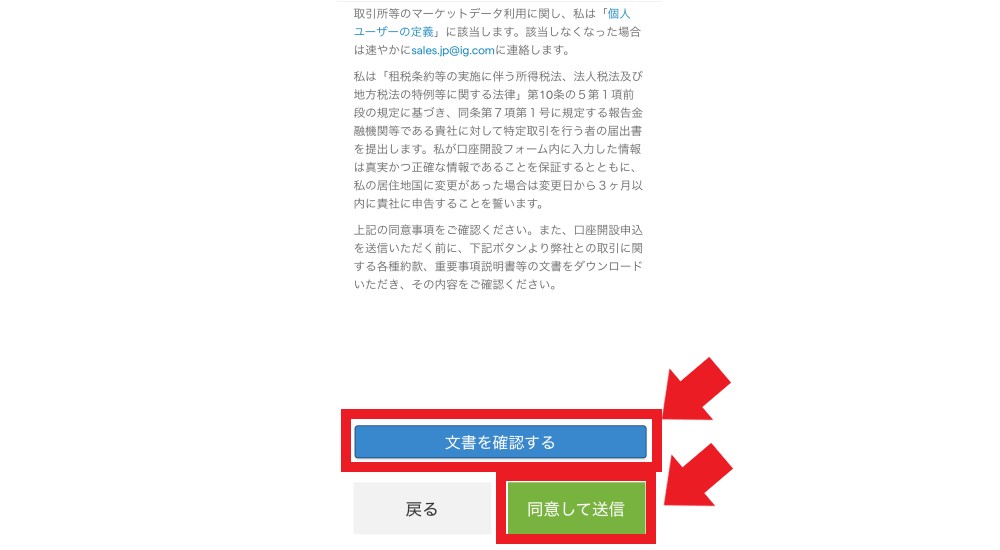 同意事項を確認し、「文書を確認する」→「同意して送信」の順でタップします。