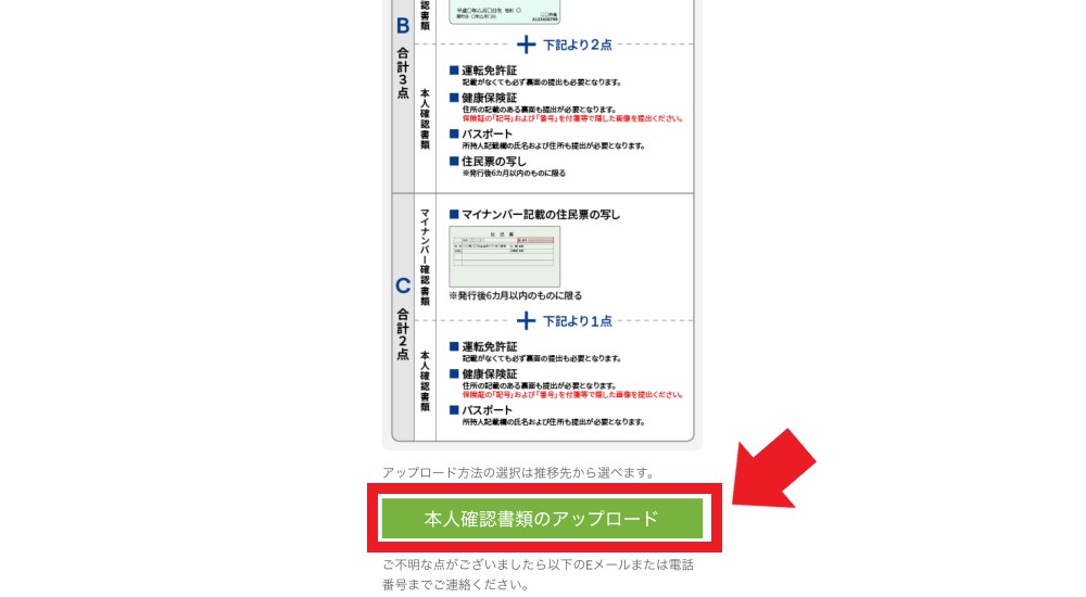本人確認書類は以下のいずれかが必要になりますので、事前に準備しておきましょう。