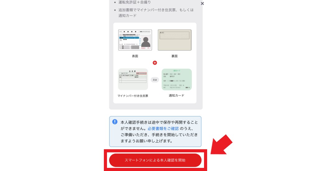 スクロールし、「スマートフォンによる本人確認を開始」をタップします。