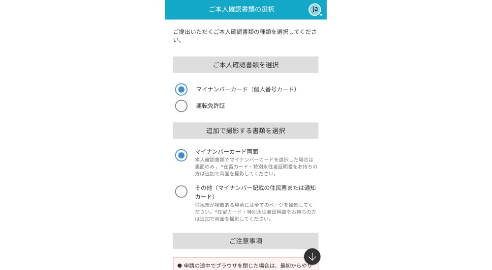 スマホとマイナンバーカードなどの本人確認書類があればOKです。