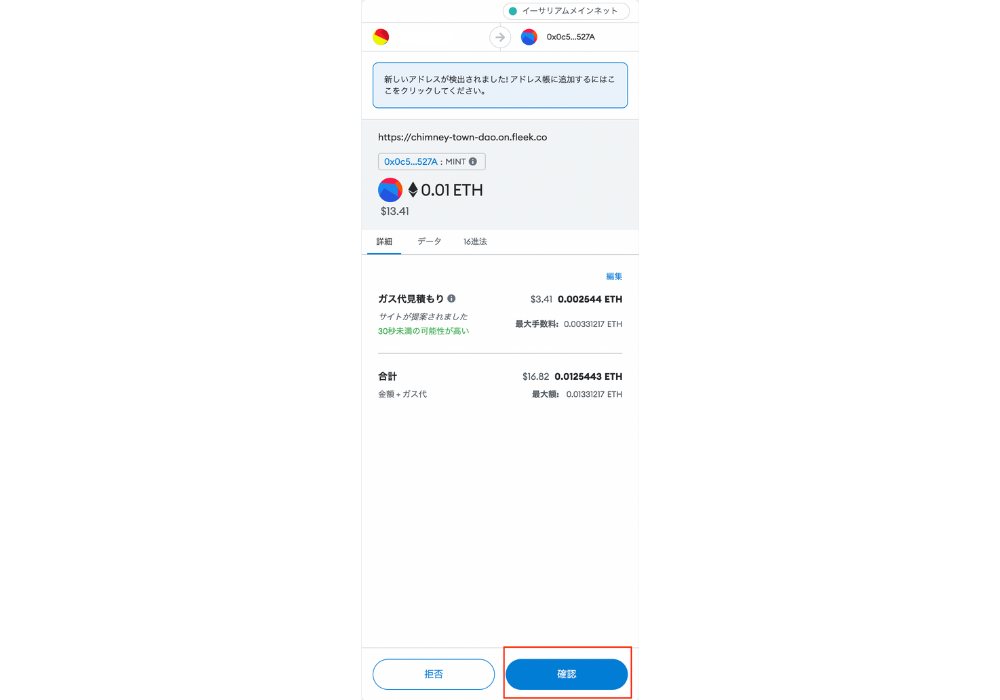 上記の内容を確認し、問題なければ「確認」をクリックしましょう。